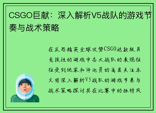 CSGO巨献:深入解析V5战队的游戏节奏与战术策略